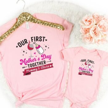 Personalized Our First Mothers Day Mommy and me Matching Shirt fits like a well-loved favorite. Super soft cotton and excellent quality print make one to fall in love with it over and over again. Personalized Our First Mothers Day Shirt, New Mom Mothers Day Gift, Mother And Baby First Mothers Day.