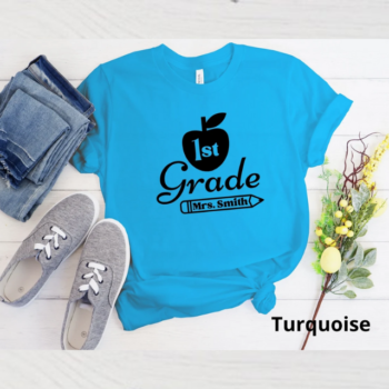 You will love this personalized 1st grade teacher shirt to wear on the first day of school and all year along. It is the perfect back to school teacher gift idea to start 1st Day of school.