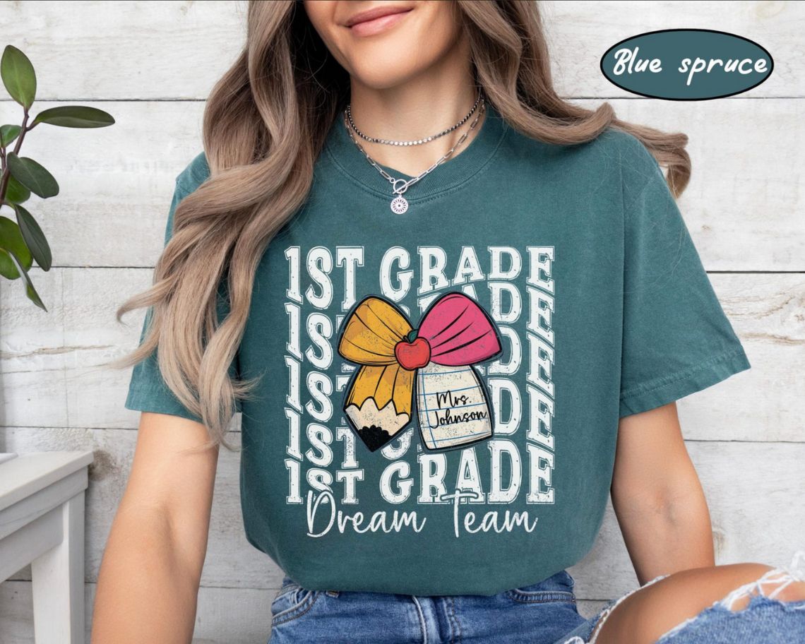 Walking into their classroom, they feel the rush of nervous excitement — a new year, a new group of little minds to inspire! 🍏✨ This personalized teacher team shirt brings them together, turning colleagues into a family, and making every first grade dream team feel valued and connected. 📚❤️ Because when we celebrate our educators, we help shape the future. 🍁🏫 #TeacherDreamTeam #BackToSchool #MakingADifference #TeacherAppreciation #TogetherStronger